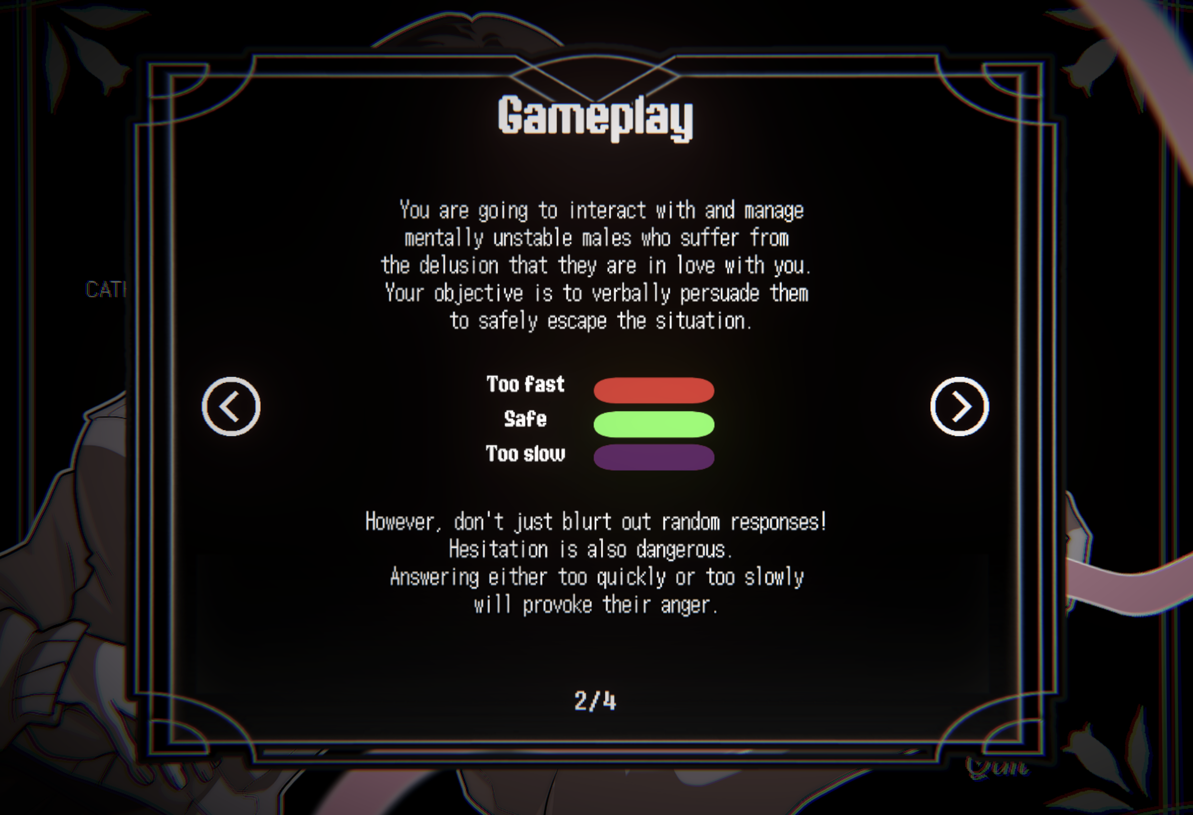 Erotomania is a dialogue simulation game about dealing with mentally unstable men.